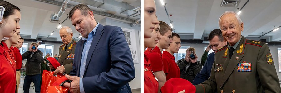 Одним из центральных моментов стало вручение юнармейцам новой формы. Генерал-полковник Владимир Зарицкий и глава округа Александр Гречищев передали комплект формы молодым участникам движения от Фонда поддержки ветеранов и офицеров запаса Сухопутных войск «Офицерское Братство».
